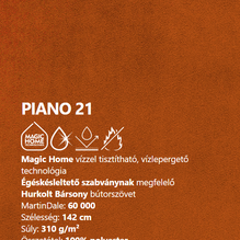 Piano - hurkolt bársony, Magic Home vízzel tisztítható, vízlepergető technológiával készült bútorszövet. Kopásállósága, 60 000 MartinDale